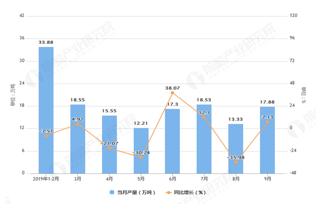 2019年9月江西省原鹽產(chǎn)量及增長(zhǎng)情況分析