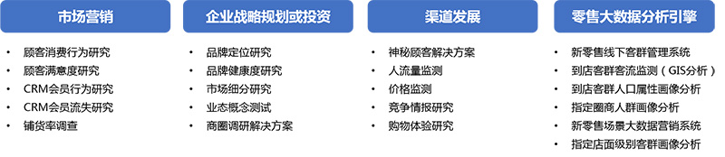 當(dāng)傳統(tǒng)“人”“貨”“場(chǎng)”的消費(fèi)場(chǎng)景被迅速重構(gòu),消費(fèi)者體驗(yàn)和數(shù)據(jù)驅(qū)動(dòng)的泛零售狀態(tài)成為焦點(diǎn),企業(yè)如何通過新零售為品牌賦能成為各行業(yè)關(guān)注重點(diǎn)。華夏經(jīng)緯零售研究包括店鋪形象研究、動(dòng)線研究、布局研究、陳列研究、店內(nèi)銷售服務(wù)研究、消費(fèi)體驗(yàn)研究、鋪貨率調(diào)查等。